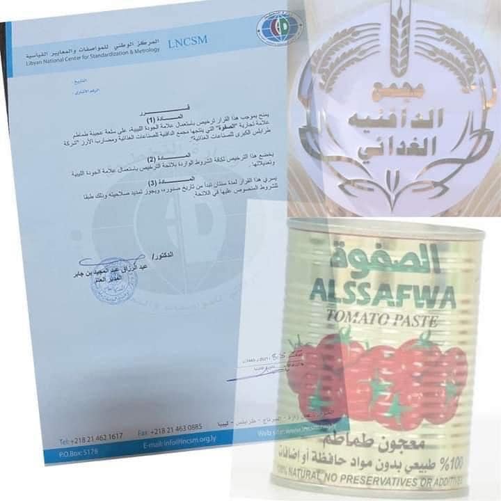 As part of its commitment to applying the highest standards of quality and food safety, Aldafniya Food Industries Complex proudly announces that its tomato paste product – under the Al Safwa brand – was awarded the Libyan Quality Mark on August 25, 2021, after successfully passing all evaluation stages. All required analyses were conducted in internationally accredited laboratories, confirming the product’s compliance with Libyan standards. This achievement comes in line with the factory’s implementation of the ISO 22000 Food Safety Management System, reinforcing consumer confidence and strengthening the product’s position in the local market